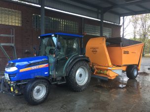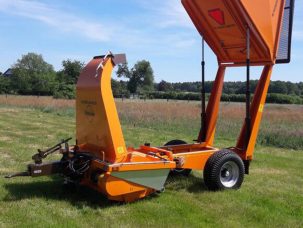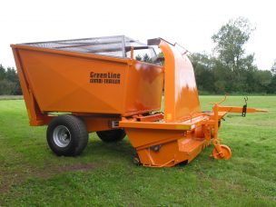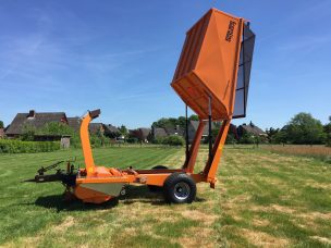 Mäh-Container auf Fahrgestell mit Hochkippfunktion