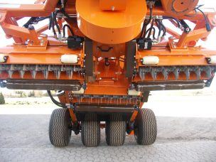 - Schnitthöheneinstellung über Nachlaufwalzen am Vertikutierkopf